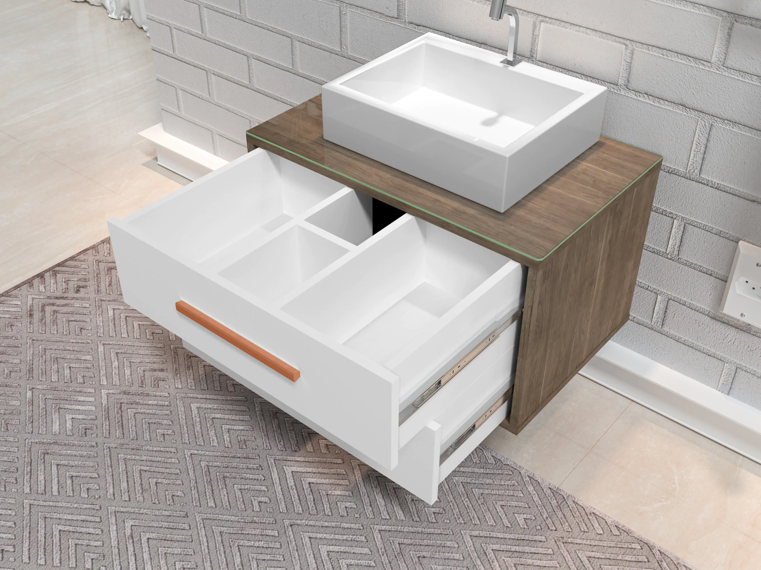Características e Diferenciais: Tampo de Vidro (opcional); Gaveta com Corrediças Telescópicas;